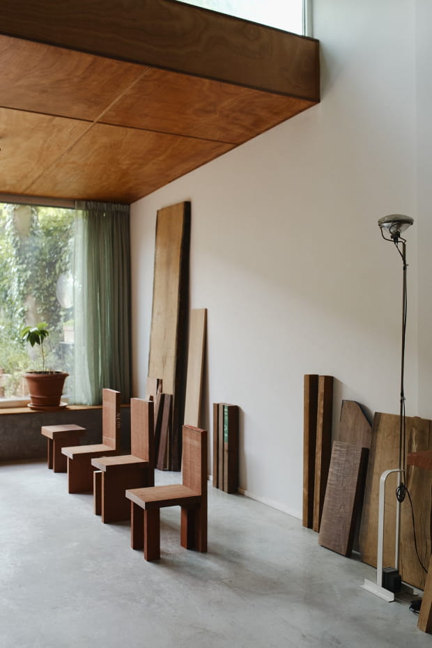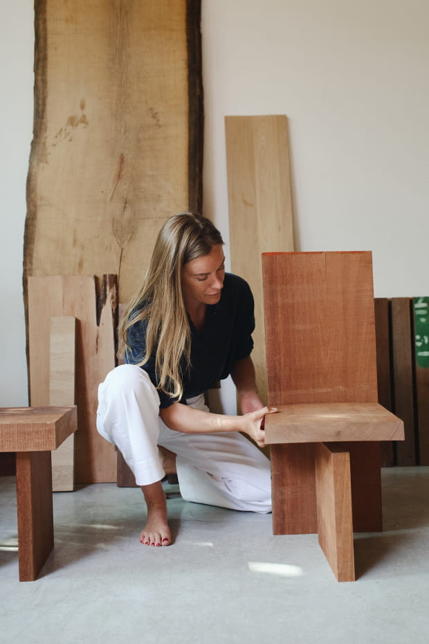 After studying furniture design and interior architecture, Laura Greindl founded Atelier 365 in Brussels, a hybrid, collaborative project halfway between a traditional cabinetmaking school and a furniture workshop. For our Creative Flowering carte blanche, dedicated to research and experimentation, she imagined three seats created instinctively from off-cuts of solid wood, assembled using traditional cabinetmaking techniques. Interview.