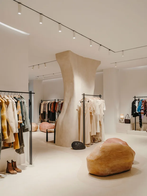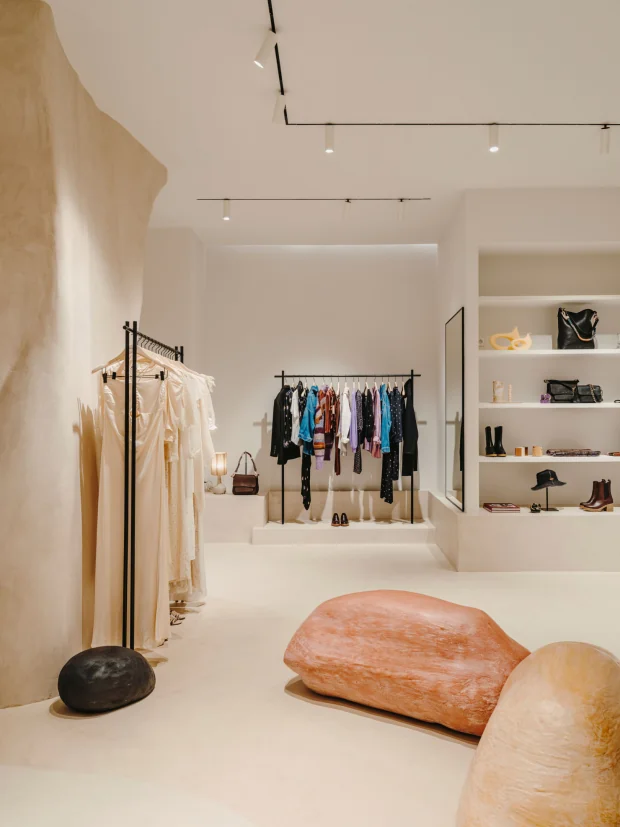 To inaugurate our second address in the Spanish capital, we chose the elegant Claudio Coello district, surrounded by historic monuments. Designed by Cobalto Studio, the space explores a color palette of rosy tones, natural materials like stone and random organic